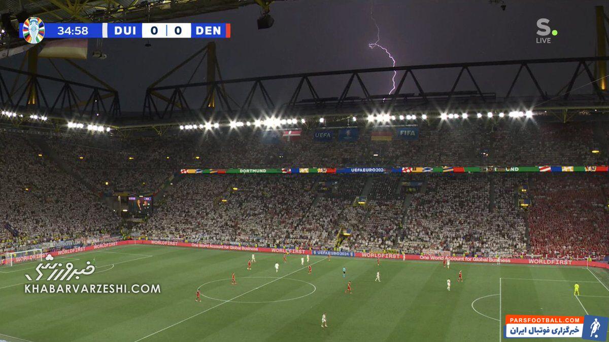 ویدیو| رعد و برق وحشت به جان داور انداخت!/ بازی آلمان – دانمارک تعطیل شد