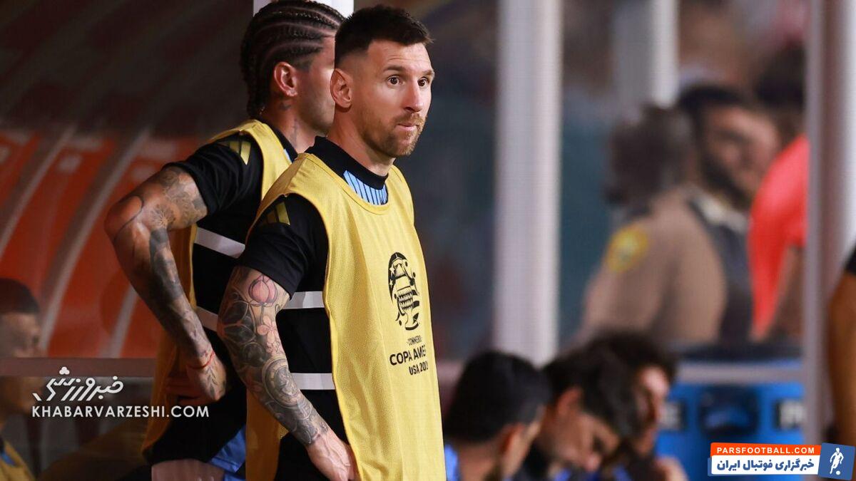 هجوم عکاسان به سوی لیونل مسی/ کاپیتان آرژانتین با کفشهای متفاوت روی نیمکت نشست! +عکس