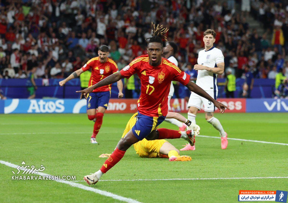دقیقه ۴۷: قفل دروازهها را نیکو ویلیامز شکست. پاس لامین یامال را نیکو با ضربه دقیق پای چپ به گوشه دروازه انگلیس فرستاد.