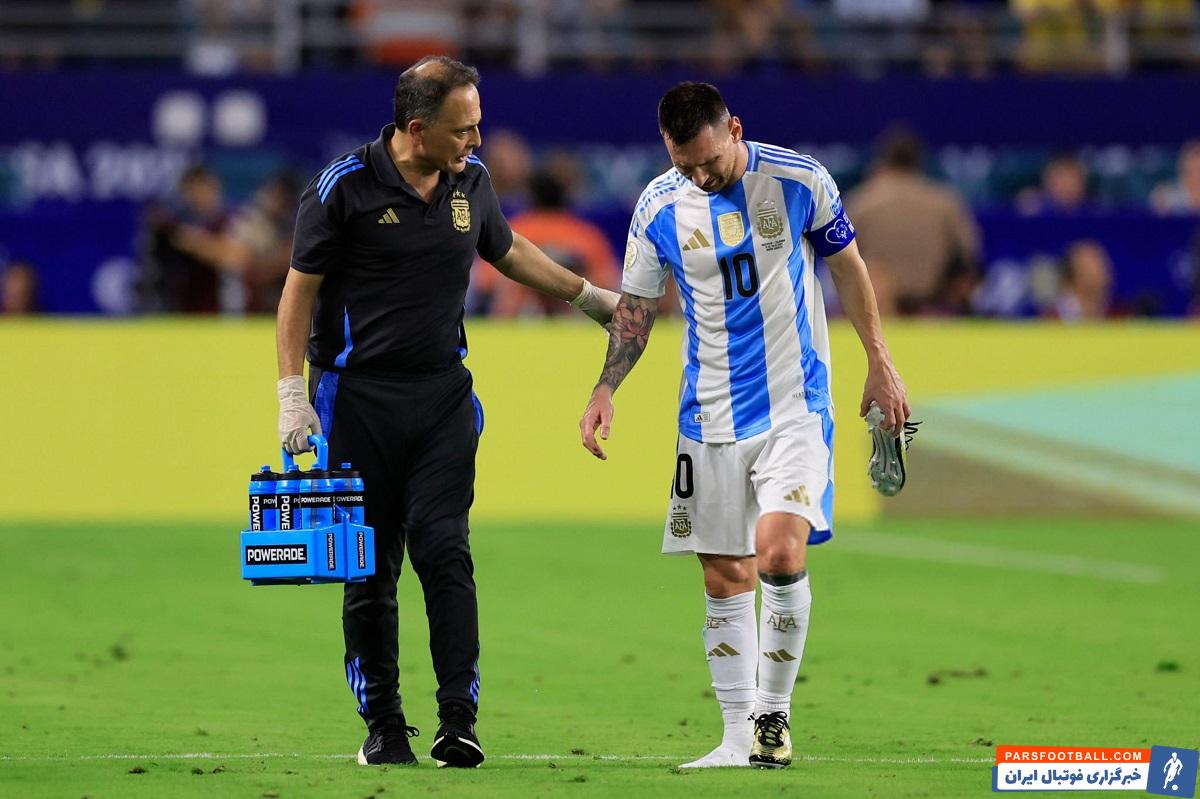 طرفداری | لیونل مسی با چشمانی اشکبار در دقیقه ۶۶ دیدار فینال کوپا آمریکا ۲۰۲۴ از زمین بازی خارج شد.
