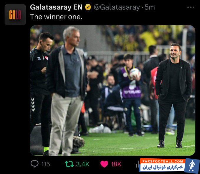 گالاتاسارای پس از پیروزی ۳-۱ مقابل فنرباحچه با هدایت مورینیو، با انتشار این تصویر نوشت: