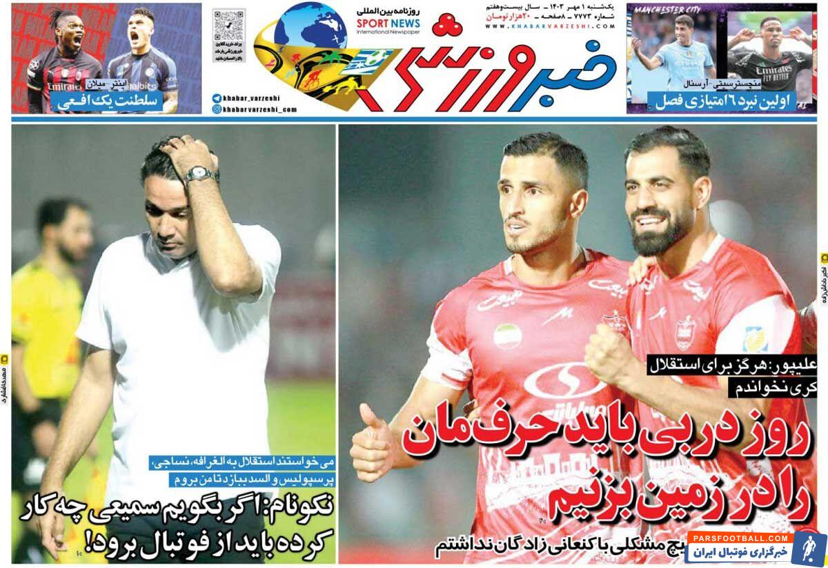 فرهاد اشراقی در سرمقاله نوشت: «استقلال فصل گذشته خوب دفاع میکرد و کم گل میخورد اما در فاز هجومیتیم چندان جذابی نبود. تیم فرهاد مجیدی هم تقریباً مثل استقلال پارسال بود با این تفاوت که قهرمان لیگ شد و دقیقاً به همین دلیل هیچکس نمیگفت چرا زیبا بازی نمیکند. نکونام امسال (شاید تحت تأثیر منتقدان) تصمیم گرفت هجومیتر بازی کند اما حالا استقلال در ۴ بازی ۶ گل خورده و عجیب اینکه حتی حسینی هم آن حسینی فصل گذشته نیست. این آمار نشان میدهد سرمربی تیم نباید تحت تأثیر منتقدان و پیجهای هواداری باشد. نکونام ابتدا باید نقطه قوت فصل گذشته که خوب دفاع کردن بود را تقویت میکرد و سپس با خرید چند چهره هجومیتیمش را در خط حمله هم درست میکرد نه اینکه همان دفاع هم خراب شود و استقلال از هر ۴ تیم شمسآذر، ملوان، استقلال خوزستان و نساجی گل بخورد! در واقع استقلالیها میخواستند ابروی تیمشان را درست کنند اما چشمش را هم کور کردند…» نکونام در دربی فقط برد میخواهد