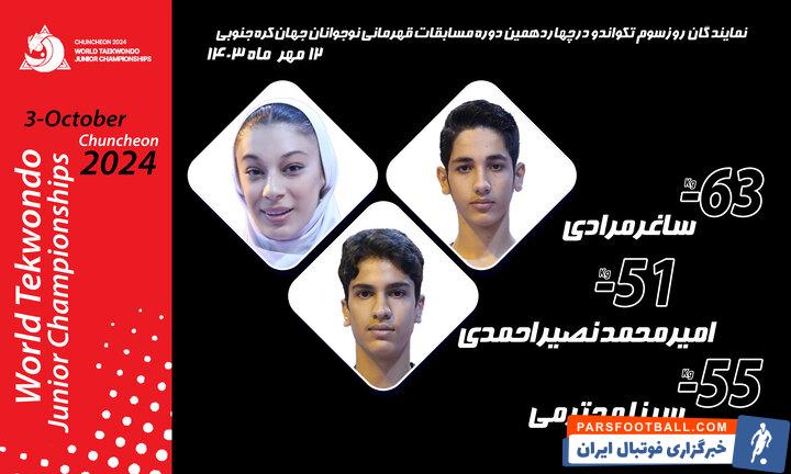 به گزارش خبرنگار مهر، مسابقات تکواندو قهرمانی نوجوانان جهان فردا پنجشنبه ۱۲ مهرماه با برگزاری مبارزات اوزان ۵۱- و ۵۵- کیلوگرم پسران و ۶۳- کیلوگرم دختران در «چانچئون» کره جنوبی پیگیری میشود که سینا محترمی، امیرمحمد نصیر احمدی و ساغر مرادی نمایندگان ایران خواهند بود.