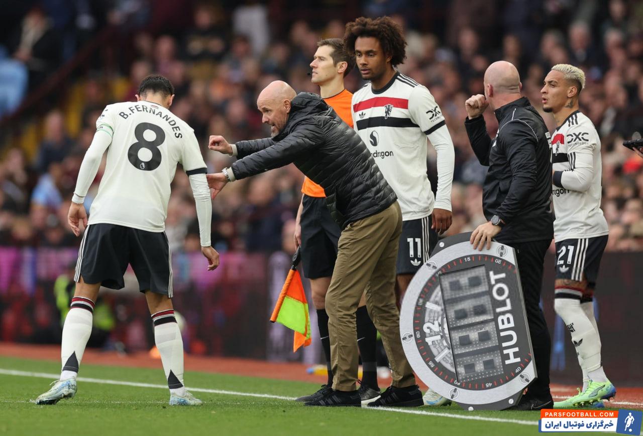طرفداری | در تساوی بدون گل استون ویلا و منچستریونایتد، اریک تن هاخ از نام بسیاری از بازیکنانش عبور کرده بود.