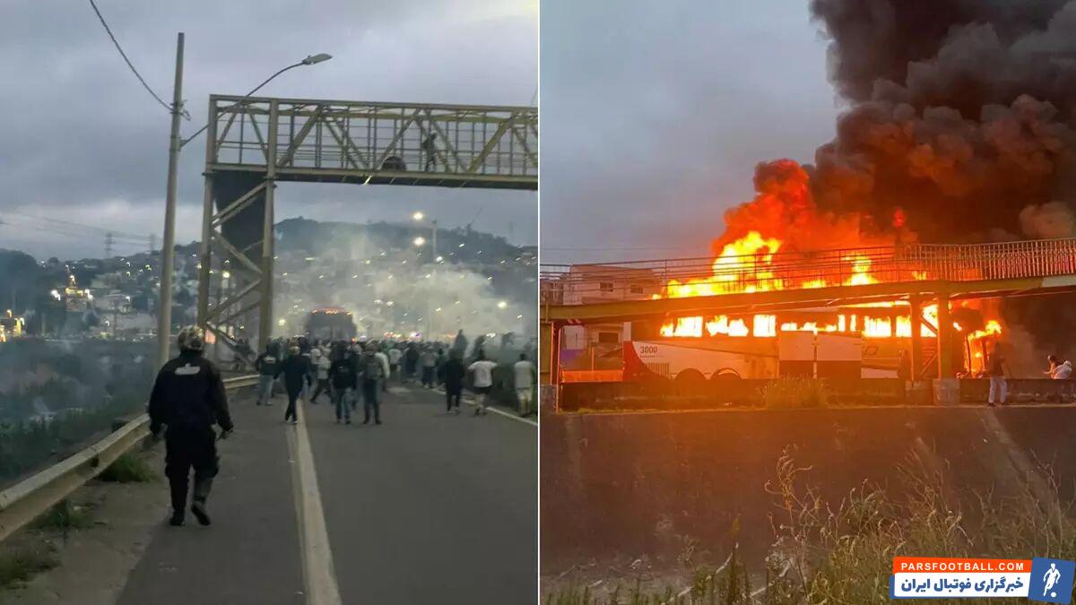 تصاویر ویدئویی تلویزیون برزیل اتوبوسی را در میان شعلههای آتش نشان میدهد و چند تن از هواداران کروزیرو نیز کنار جاده نقش بر زمین و هواداران پالمیراس با چوب و چماق و مشت به آنها حملهور شدهاند.