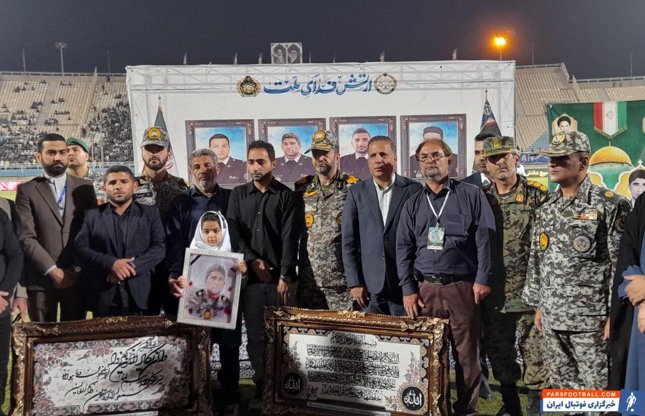 هواداران ۲ تیم به احترام شهیدان پدافند هوایی ارتش یک دقیقه سکوت کردند, همچنین دختر شهید جهاندیده در این مراسم حضور داشت.
