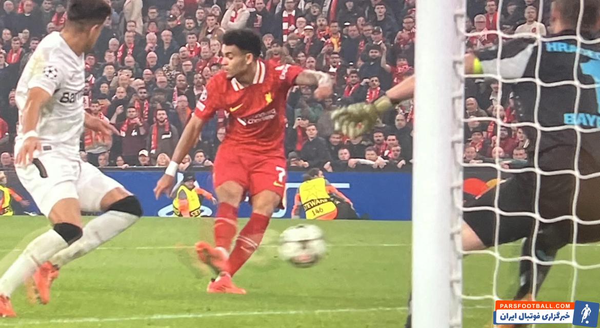 گل سوم لوئیز دیاز به بایر لورکوزن (لیورپول ۴-۰ بایرلورکوزن)
