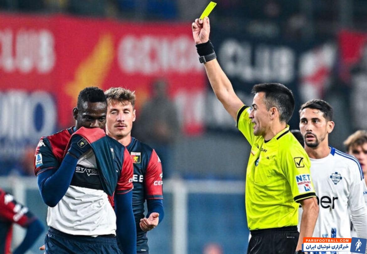 ماریو بالوتلی در دومین بازی خود برای جنوا هم کارت زرد دریافت کرد
