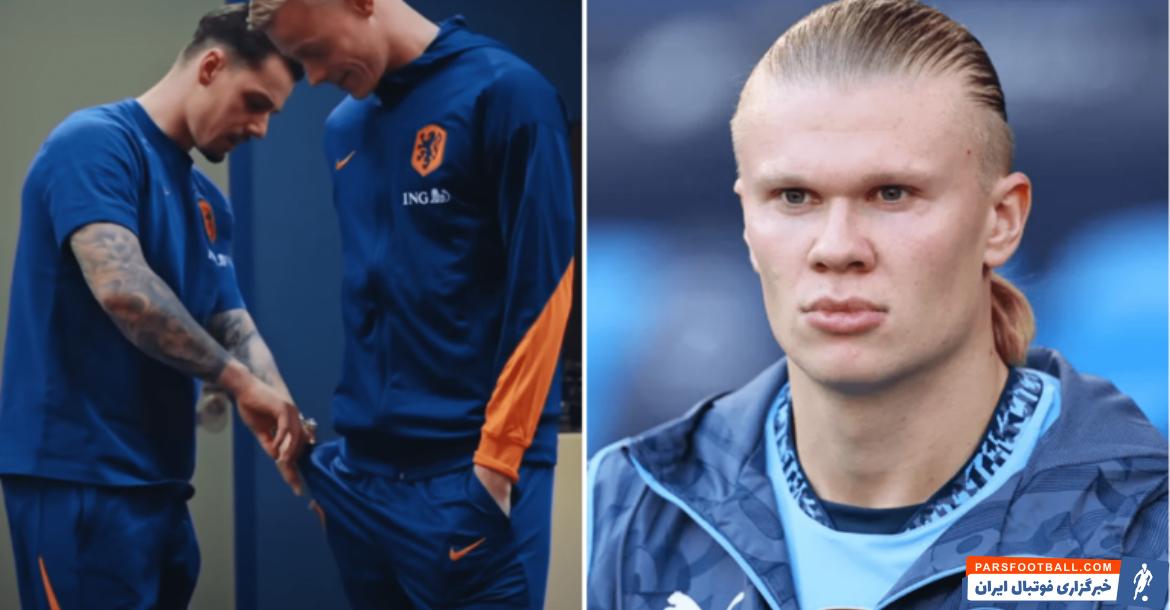 شوخی با غول نروژی در اردوی تیم ملی هلند؛ در جستجوی هالند در جیب فن هکه / عکس