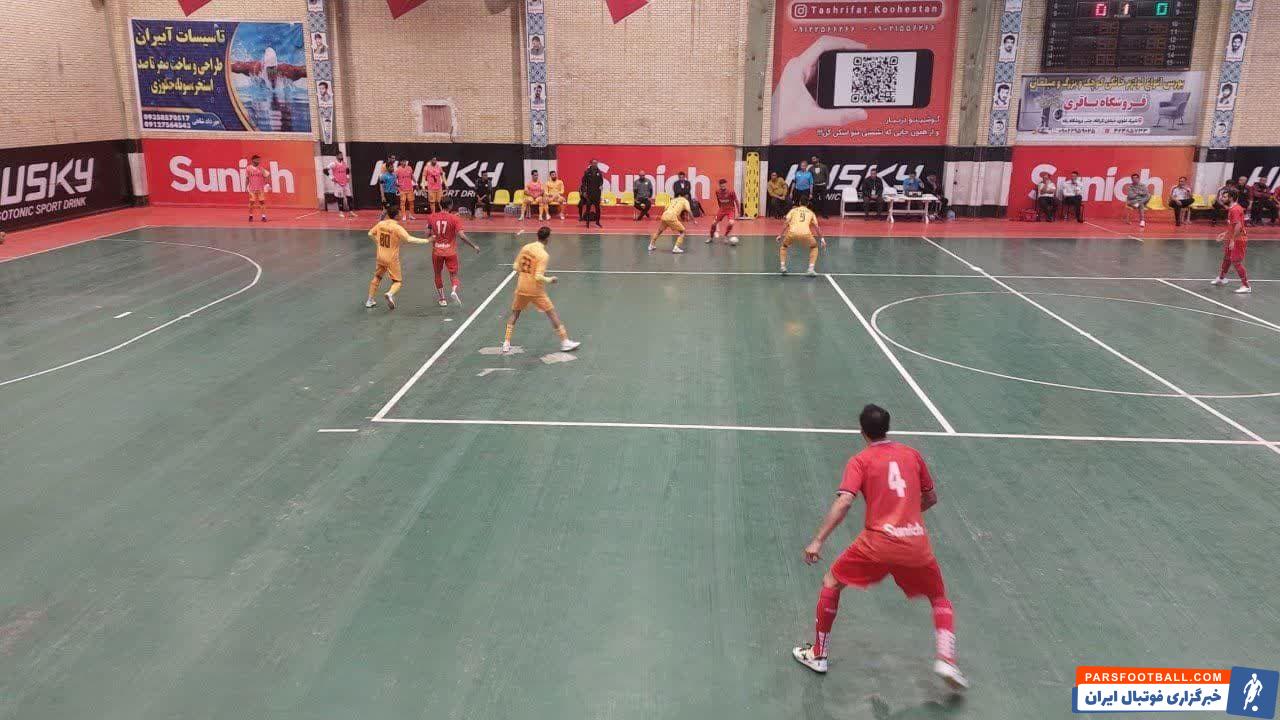 هر ۲ تیم، با ارائه فوتسالی تکنیکی و بازی دفاعی، به‌دنبال شکستن انسجام دفاعی حریف بودند اما در دقیقه ۱۳، هادی منجمی از تیم سن‌ایچ، قفل دروازه پالایش نفت را شکست و با یک ضربه دقیق از میانه زمین، توپ را به تور دروازه حریف چسباند. این گل، سرآغاز تلاش‌های بیشتر ۲ تیم در ادامه بازی بود و سن‌ایچ با برتری ۱ بر صفر به رختکن رفت.