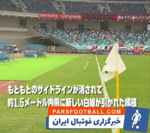 رسانههای ژاپنی نوشتهاند که چینیها خطهای جدیدی روی زمین کشیدهاند و عرض آن را ۱.۵ متر طبق استانداردهای فیفا کم کردهاند.