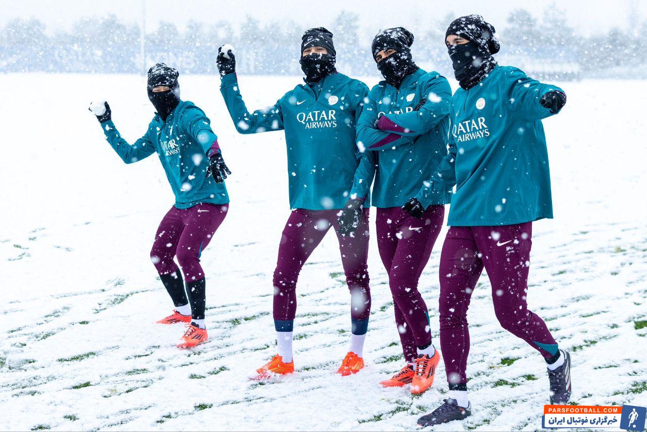 تمرین پاری سن ژرمن در روز برفی پاریس / عکس