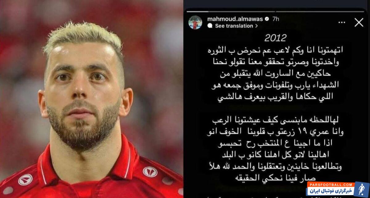 حال بعد از سقوط حکومت بشار اسد، محمود مواس یک استوری اینستاگرامی علیه رییس جمهور مخلوع سوریه منتشر کرده است. مواس در اینستاگرام خود نوشته: