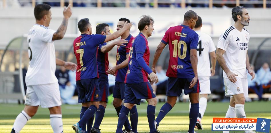 ریوالدو، یکی از برندگان توپ طلا که در زمین حضور داشت | خوشحالی پس از گل بازیکنان بارسلونا |