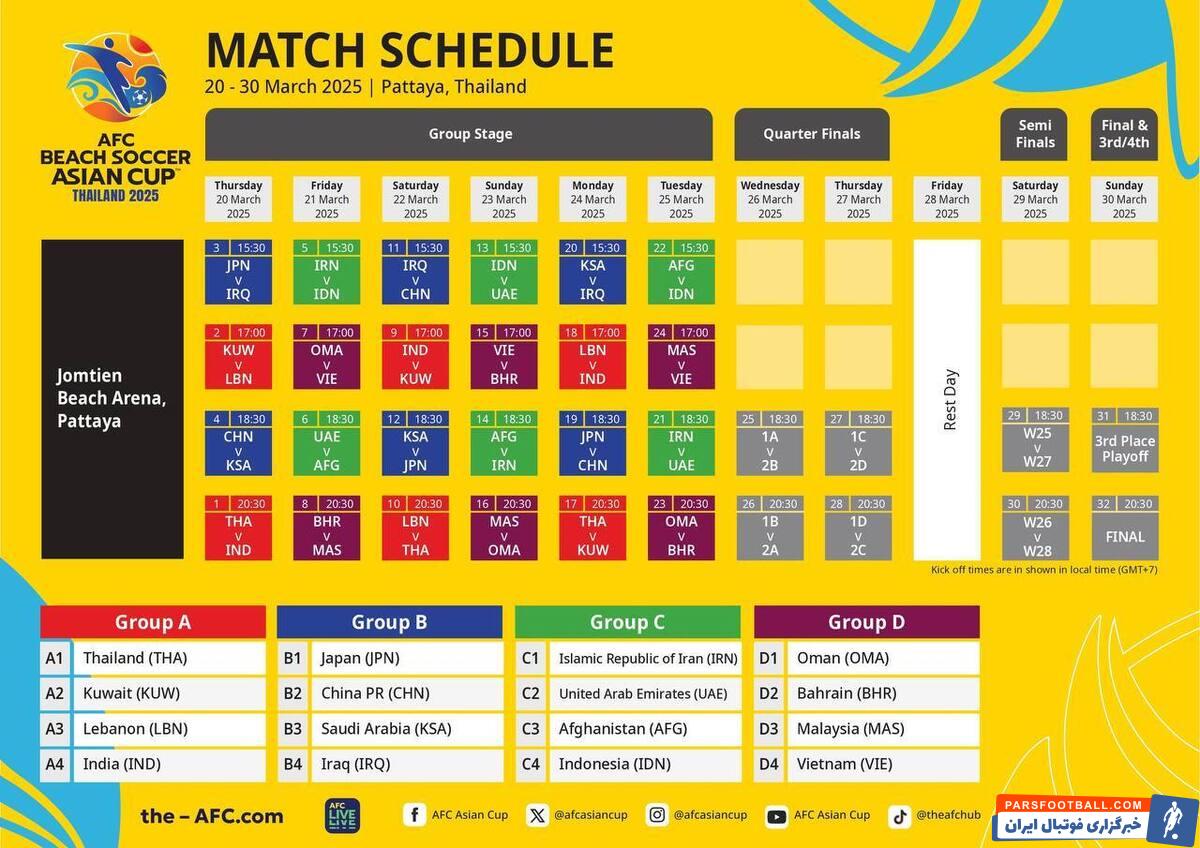 فوتبال ساحلی آسیا| اعلام برنامه کامل مرحله گروهی و بازیهای تیم ملی ایران