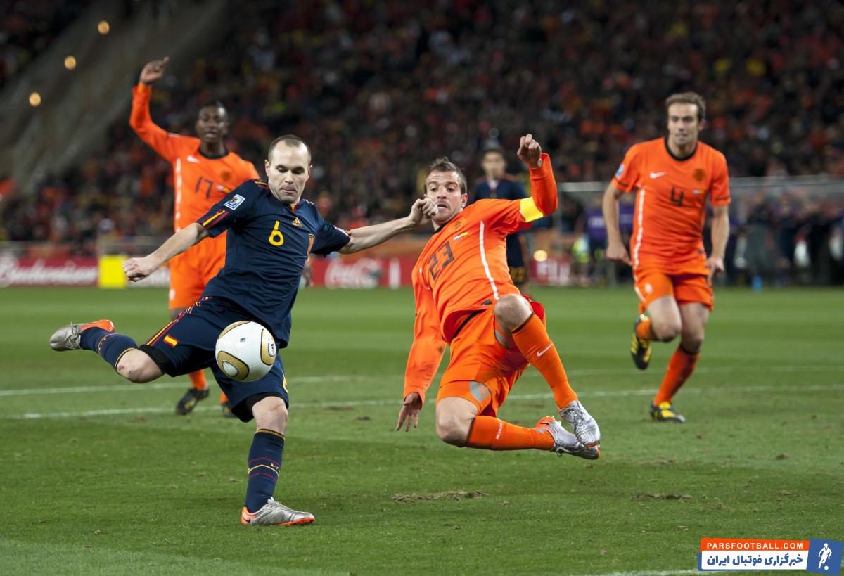 آندرس اینیستا کنار مجسمه مهمترین لحظه تاریخ فوتبال اسپانیا / عکس