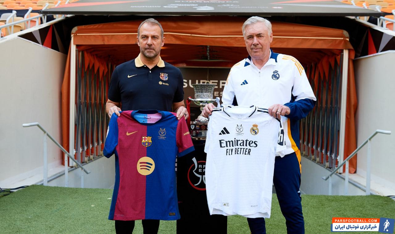 فینال سوپرکاپ اسپانیا ۲۰۲۵ بین بارسلونا و رئال مادرید برگزار خواهد شد. پیش از این ال کلاسیکو که برای ۲۲:۳۰ یکشنبه به وقت تهران برنامهریزی شده، سرمربیان دو تیم با هم ملاقات کردند. در ادامه تصاویری از دیدار کارلو آنچلوتی و هانسی فلیک کنار جامِ سوپرکاپ اسپانیا را مشاهده میکنید.