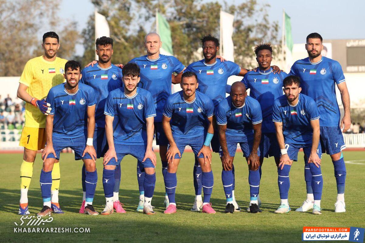 آبی ها در حالی بازی را با ترکیب سید حسین حسینی، ایمان سلیمی، رافائل سیلوا، رامین رضائیان، ابوالفضل جلالی، آرش رضاوند، مهدی بهرامینژاد، گائل کاکوتا، علیرضا کوشکی، مسعود جوما و جوئل کوجو شروع کردند که پس از تساوی بدون گل در ۴۵ دقیقه نخست، در نیمه دوم کادرفنی تصمیم گرفت به محمدحسین مرادمند، سامان فلاح، امیرعلی صادقی، امیر محمد مردی، حسام اسکندری، آرمان رمضانی، محمدرضا خالدآبادی و مجتبی هاشمی نسب هم فرصت بازی بدهد.