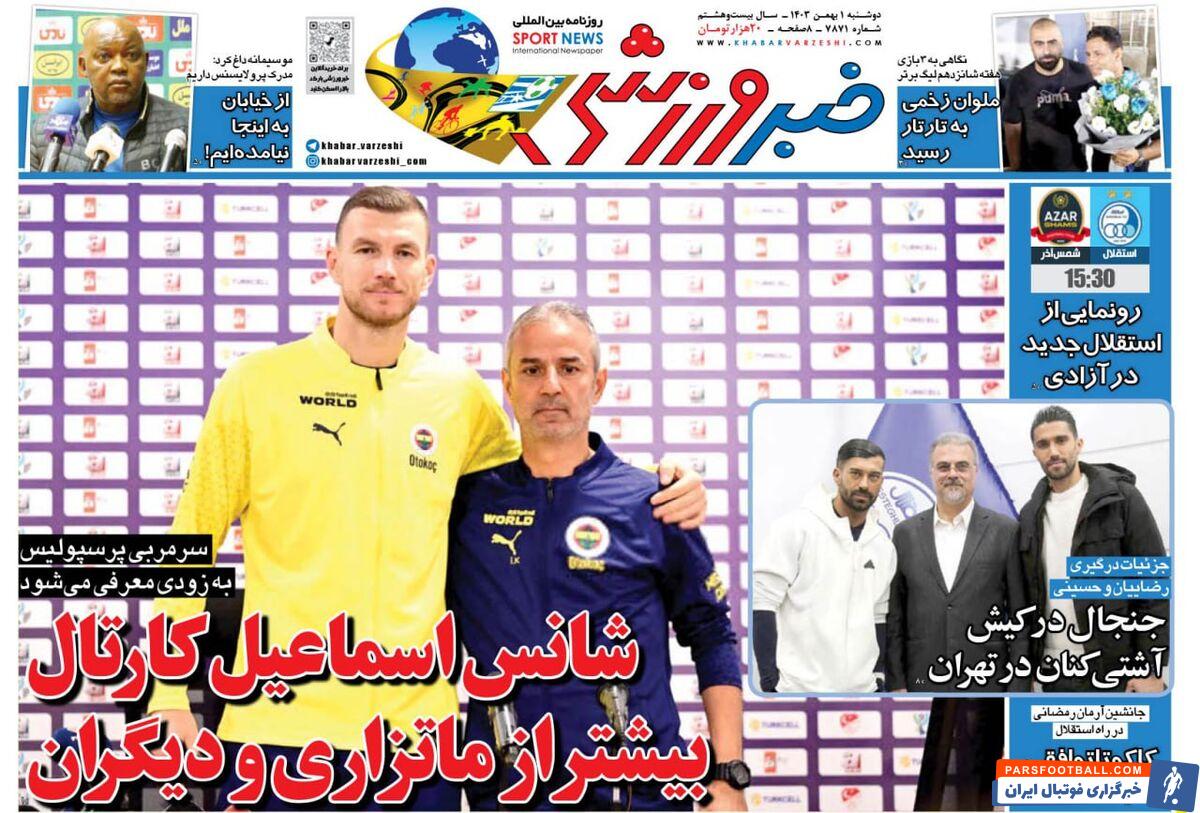 به گزارش خبرورزشی، جلد شماره روز دوشنبه اول بهمن ماه روزنامه خبرورزشی اختصاص دارد به کارتال، سرمربی اهل ترکیه که شانس اول نشستن روی نیمکت پرسپولیس است. هواداران پرسپولیس خسته از امروز وفرداهای ماتزاری و شل کن سفت کن های جولیان استپان فرانسوی، حالا بی صبرانه منتظرند مرد ۹۹ امتیازی به پرسپولیس بیاید. مردی که فصل قبل با فنرباغچه ۹۹ امتیاز در لیگ برتر ترکیه گرفت اما زورش به گالاتاسرای با ۱۰۲ امتیاز نرسید و نایب قهرمان شد.