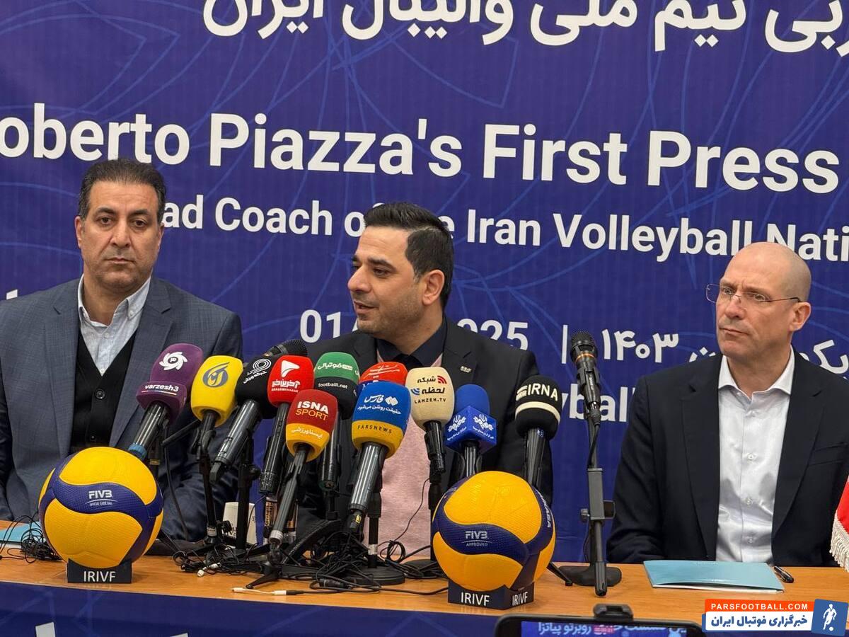 روبرتو پیاتزا، سرمربی جدید و ایتالیایی تیم ملی والیبال پس از امضای قرارداد ظهر امروز (دوشنبه) در نخستین نشست خبری خود با حضور اصحاب رسانه که در آمفی تئاتر هتل مرکز ملی فوتبال حضور پیدا کرد.