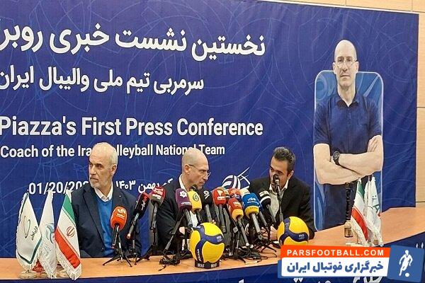 روبرتو پیاتزا در اولین نشست خبری خود در آکادمی ملی فوتبال در جمع خبرنگاران گفت: از استقبال همگی ممنونم، از رئیس فدراسیون تشکر می کنم که به من این موقعیت را داد که به ایران بیایم، دلیل انتخابم این است که دوباره میتوان خیلی چیزها را ساخت و دوباره شروع کرد. دوست دارم کار ولاسکو را ادامه بدهم. او نگاه دنیا را به والیبال عوض کرد، همین کار را با ایتالیا انجام داد. من میخواهم این کار مهم را تجربه کنم.