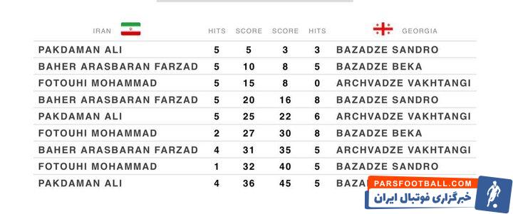 عملکرد نمایندگان ایران در دیدار برابر گرجستان به این شرح است: