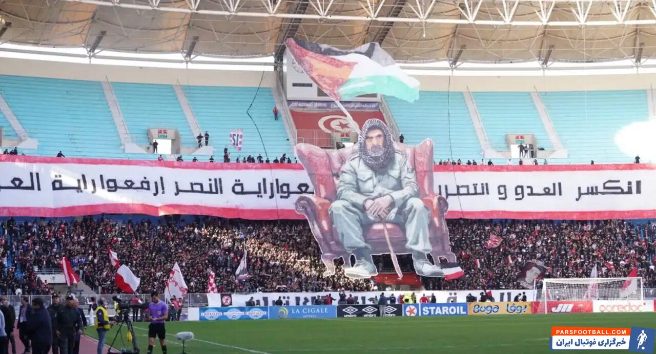 اقدام جالب هواداران تونسی؛ برافراشته شدن تصویر سنوار در ورزشگاه + فیلم