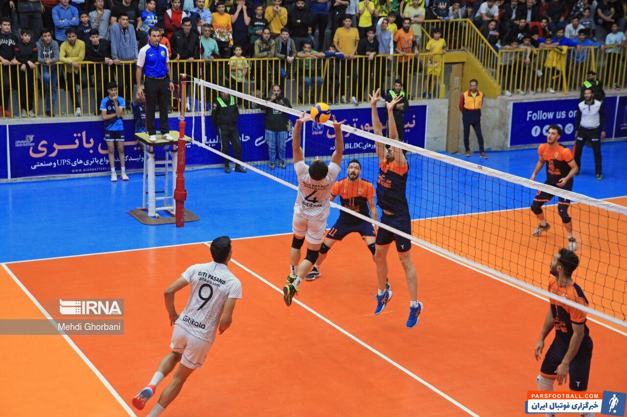 بلندقامتان گیتی پسند که در دیدار دور رفت، نتیجه را به صنعتگران امید تهران واگذار کردند، امروز در خانه و با حضور هواداران پرشور خود به دنبال انتقام شکست نیم فصل نخست لیگ برتر مقابل این تیم تهرانی بودند و بازی را با جنگندگی آغاز کردند به طوریکه موفق شدند در ست اول با نتیجه ۲۵ بر ۲۲ به رختکن بروند.