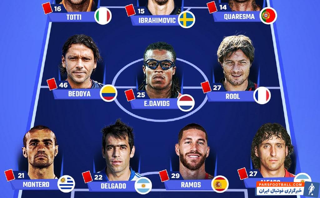 ترکیب منتخب بازیکنانی که بیشترین کارت قرمز را دارند