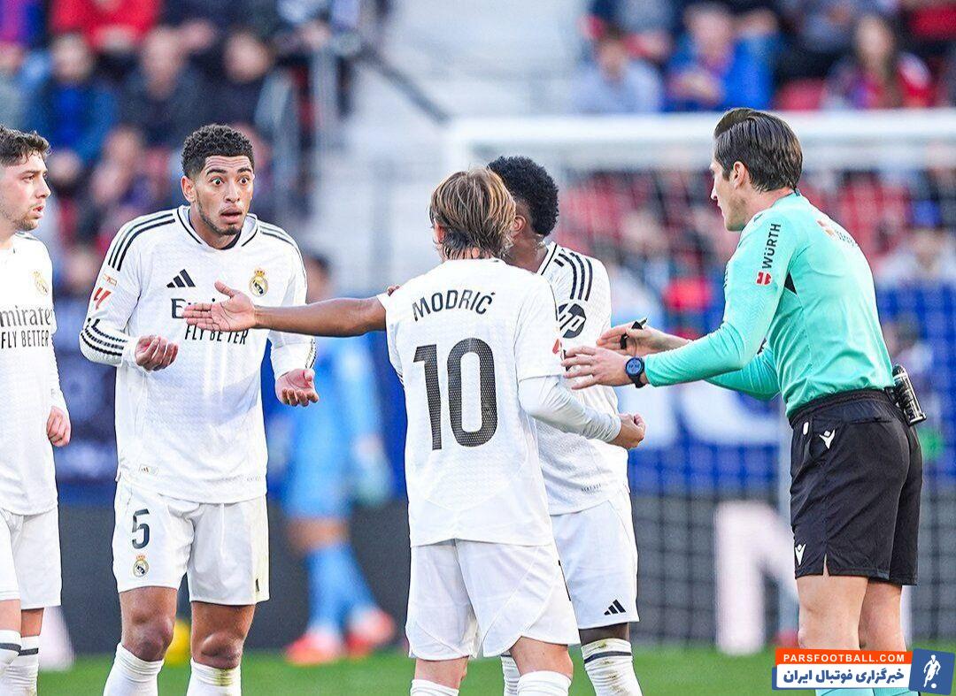 به گزارش خبرورزشی، از هفته بیست و چهارم لالیگا دیدار دو تیم رئال مادرید و اوساسونا با تساوی ۱-۱ به پایان رسید. در این بازی ابتدا کیلین امباپه در دقیقه ۱۵ با پاس فدریکو والورده گل اول را به ثمر رساند. با این حال اخراج جود بلینگام در دقیقه ۳۹ به دلیل اعتراض به داور به ضرر کهکشانیها تمام شد. در دقیقه ۵۸ نیمه دوم روی اشتباه کاماوینگا، میزبان صاحب یک ضربه پنالتی شد که بودیمیر آن را تبدیل به گل کرد. خطای پنالتیای که بسیار مورد اعتراض رئالیها قرار گرفت. بازیکنان رئال همچنین معتقد بودند که داور میتوانست دو پنالتی برای آنها بگیرد.