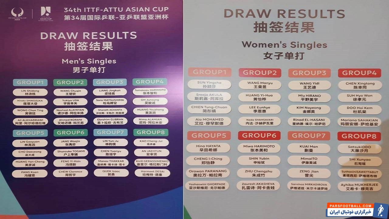 همچنین نیما عالمیان دیگر راکت بدست کشورمان در گروه چهارم با توموکازو هاریموتو از ژاپن، اوه جون سونگ از کره جنوبى و هوآنگ یوژنگ از چین در گروه بسیار سختى قرار گرفت.