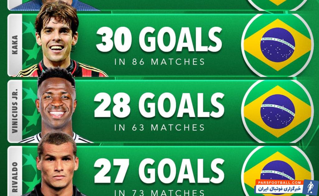 برترین گلزنان برزیلی تاریخ لیگ قهرمانان اروپا؛ بهزودی: سبقت وینیسیوس از کاکا