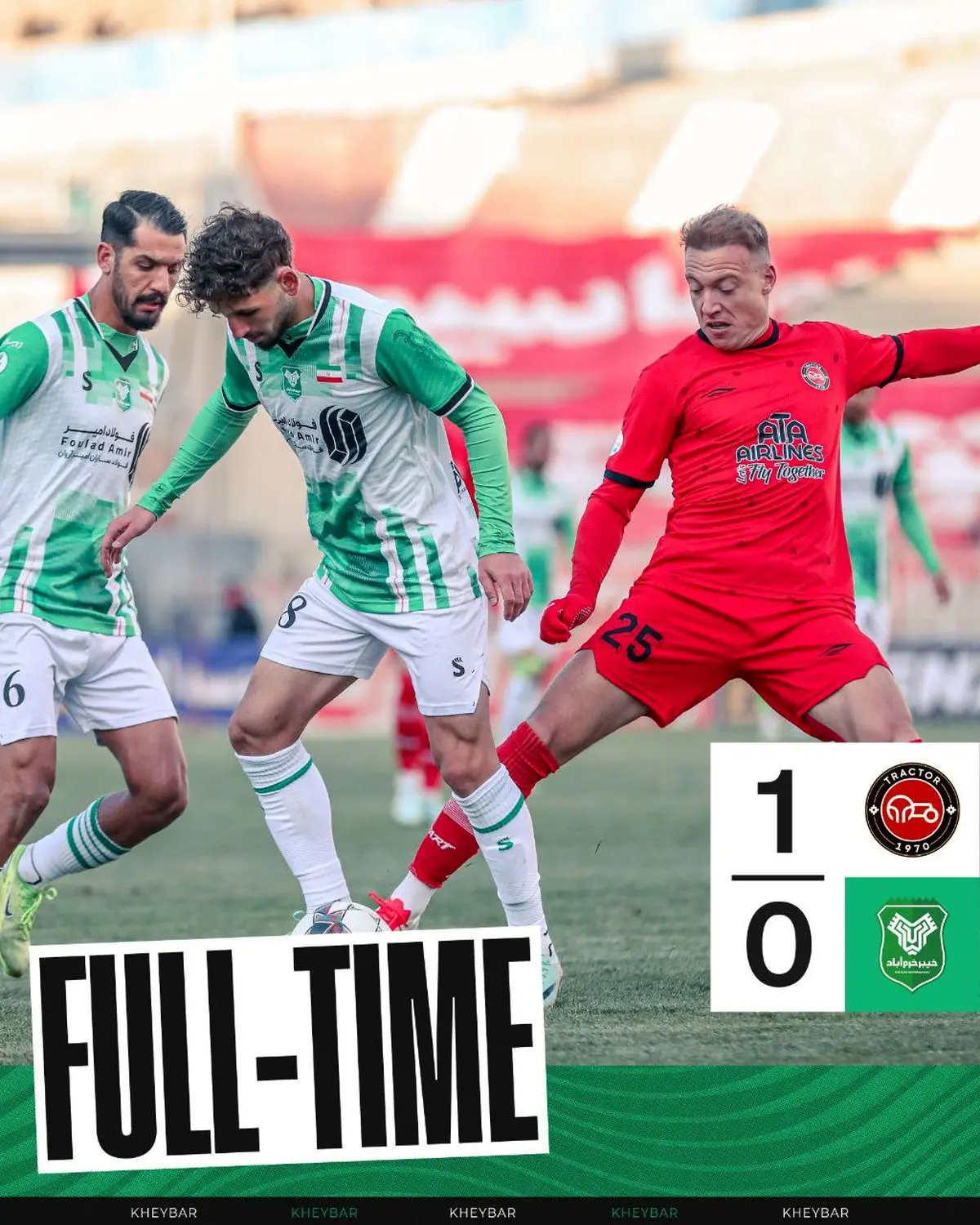 * در دقیقه ۴ روی ضربه نوک پای بی محابای بازیکن خیبر به صورت محمد نادری اولین اخطار بازی خیلی زود به ثبت رسید. تراکتوریها معتقد بودند داور باید بازیکن خیبر را اخراج میکرد.