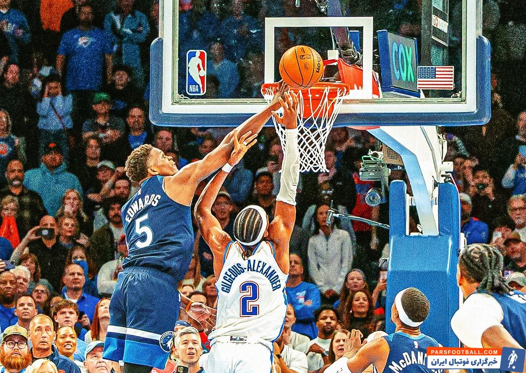 مینه سوتا تیمبروولوز خیلی زود فرصت انتقام گرفتن از اوکلاهماسیتی تاندر را به دست آورد و از آن استفاده کرد. خلاف بازی روز گذشته، تیمبروولوز موفق شد در کلاچ تایم مقاومت کند و البته کامبک خیلی خوبی هم در اواسط بازی زد. جیدن مک دنیلز که ۲۷/۱۱/۴ از خودش به ثبت رساند، با شوت خودش کاری کرد بازی به اورتایم کشیده شود. نز رید ۲۲ امتیاز و ۱۱ ریباند از خودش به جا گذاشت و آنتونی ادواردز (۱۷/۱۳/۸) از دوئل مقابل شی گیلجس الکساندر سربلند خارج شد و یک بلاک کلاچ مقابل مدعی اصلی MVP ثبت کرد. شی البته دو اسیست تا تریپل دبل کم آورد و کارش را با آمار عالی ۳۹ امتیاز، ۱۰ ریباند و ۸ اسیست تمام کرد.