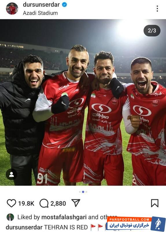 عکس/ واکنش دورسون به برد دربی: «تهران قرمز است»