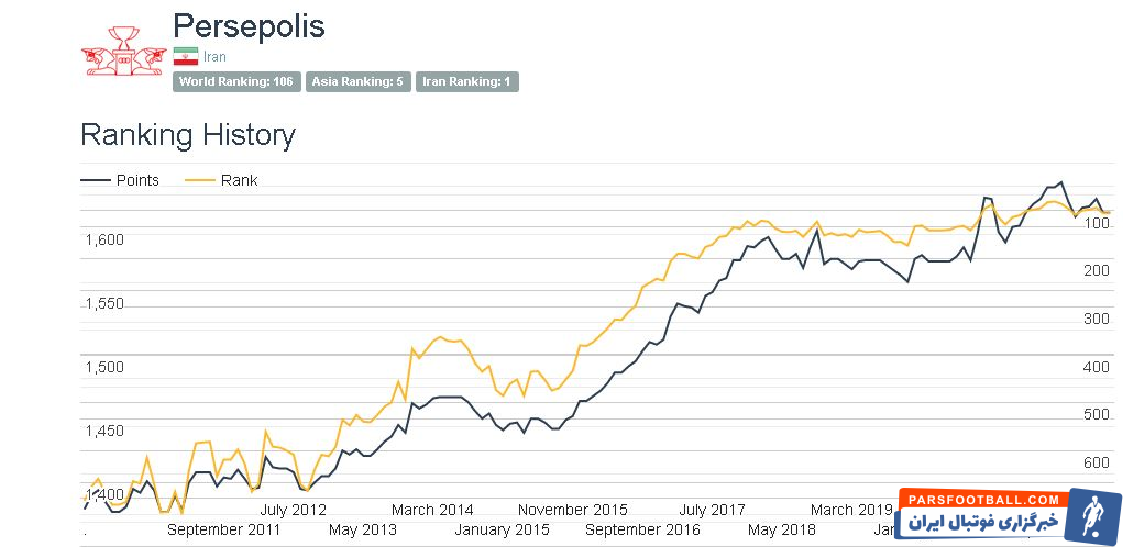 در رده بندی جدید پرسپولیس از لیست ۱۰۰ باشگاه برتر جهان خارج شد و با سقوط ۵ پله ای در جایگاه ۱۰۶ جهان قرار گرفت. همچنین سرخ پوشان پایتخت که سابقه رسیدن به جایگاه سوم آسیا را داشتند در این رده بندی در جایگاه پنجم قاره کهن قرار گرفتند.