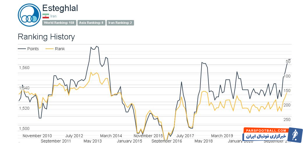 اما در مقابل استقلال صدرنشین لیگ برتر ایران جهشی خوبی در جهان داشت و به رده ۱۵۸ جهان رسید. این درحالیست که شاگردان مجیدی در ماه گذشته رده ۱۹۰ جهان قرار داشتند. همچنین آبی پوشان پایتخت به جایگاه هشتم آسیا رسیدند.
