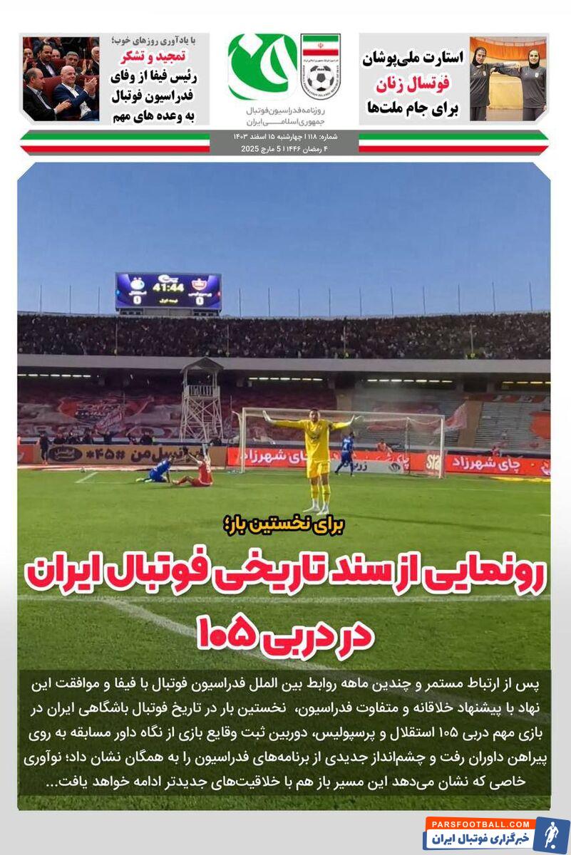 رونمایی از سند تاریخی فوتبال ایران در دربی ۱۰۵