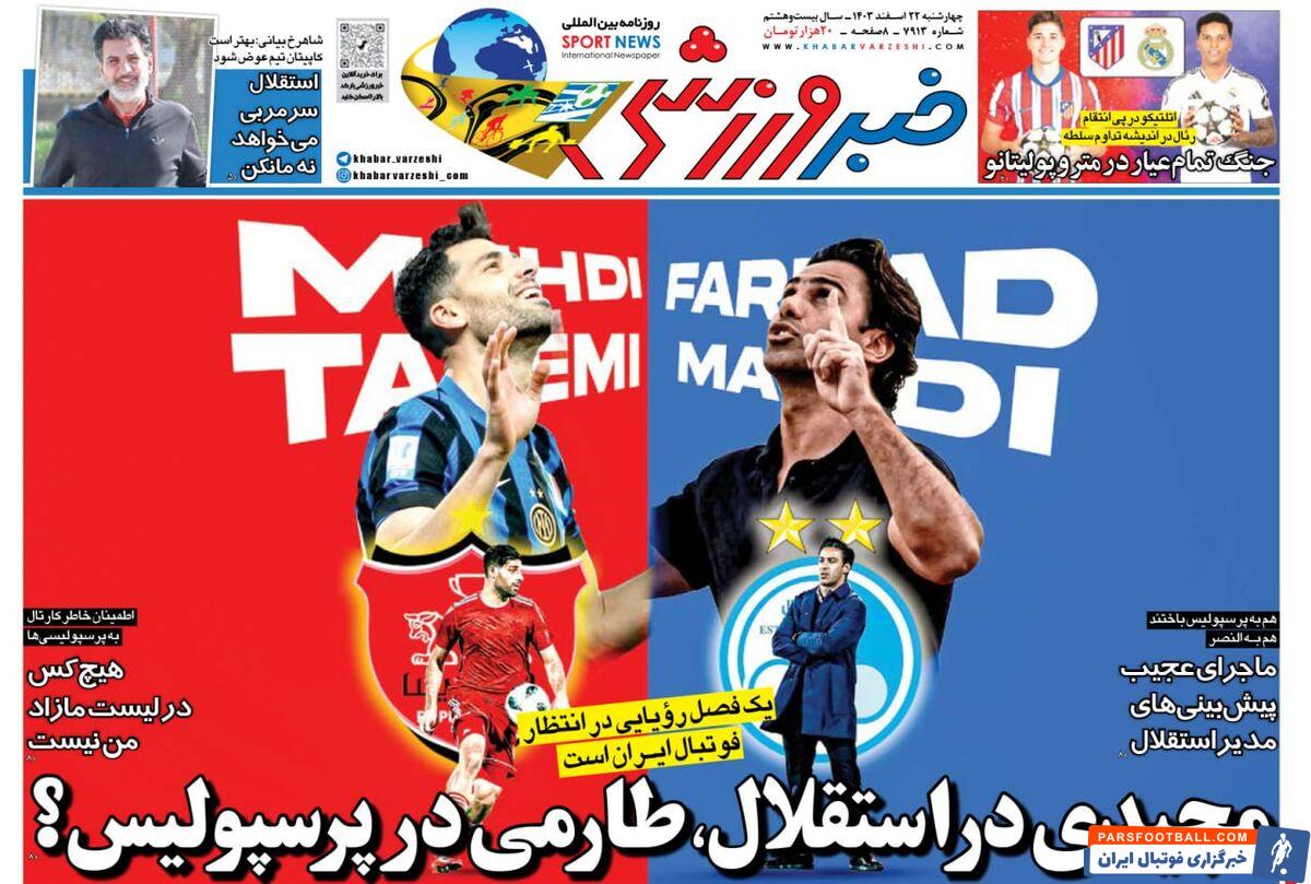 روزنامه خبرورزشی برای تیتر اول شماره فردای خود همین موضوع را انتخاب کرده و با طرحی جذاب تیتر زده؛ مجیدی در استقلال و طارمی در پرسپولیس…