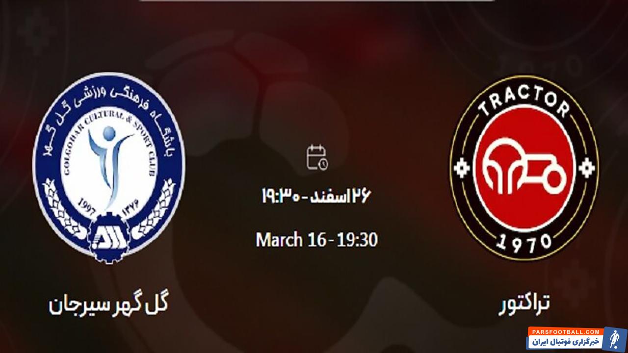 دیدار تیم های تراکتور و گل گهر از هفته بیست و سوم رقابت های لیگ برتر ساعت ۱۹:۳۰ یکشنبه ۲۶ اسفند در ورزشگاه یادگار امام تبریز انجام می شود.