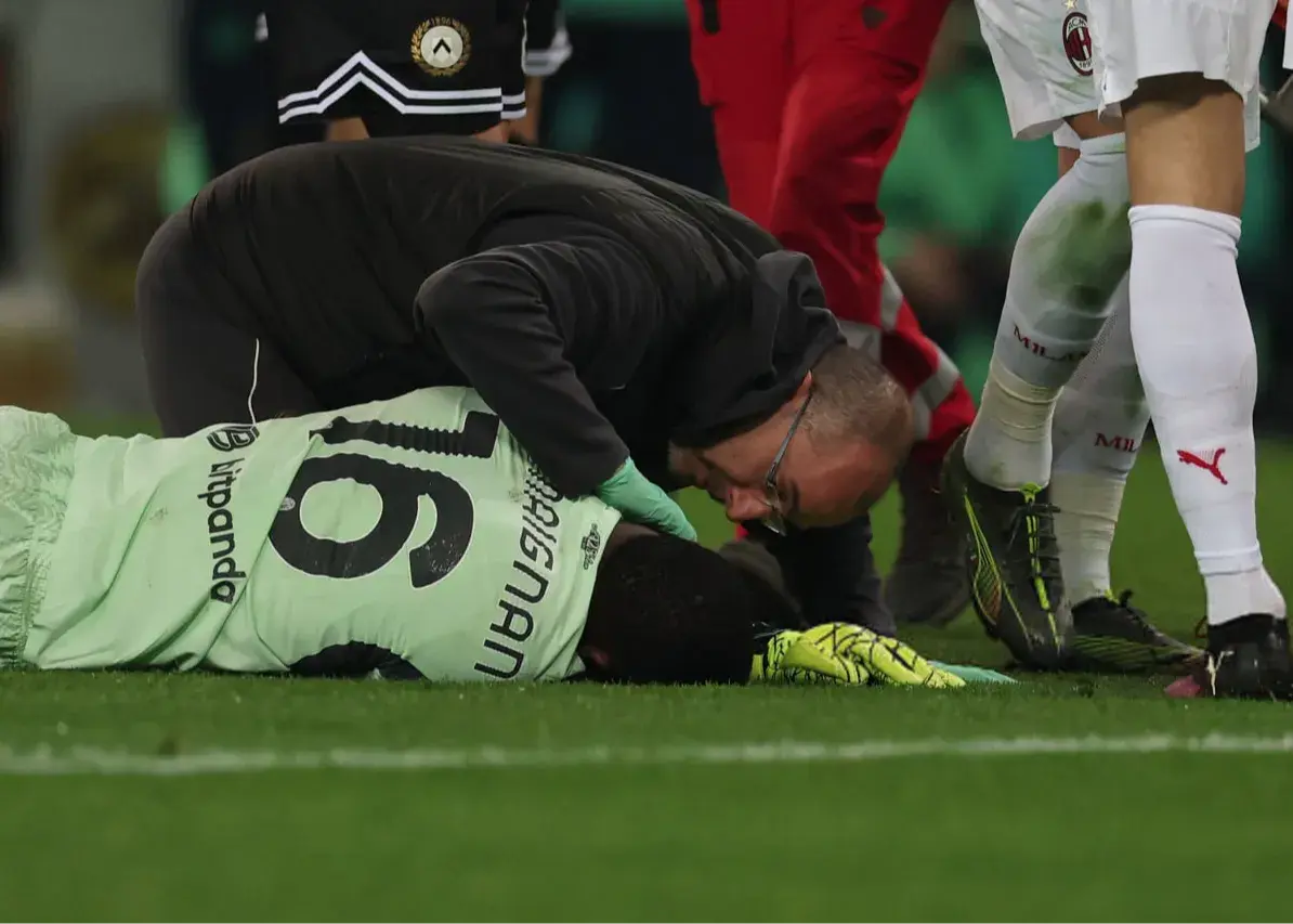 مایک مانیان، دروازهبان میلان، در دیدار تیمش برابر اودینزه به دلیل مصدومیت از زمین خارج شد.