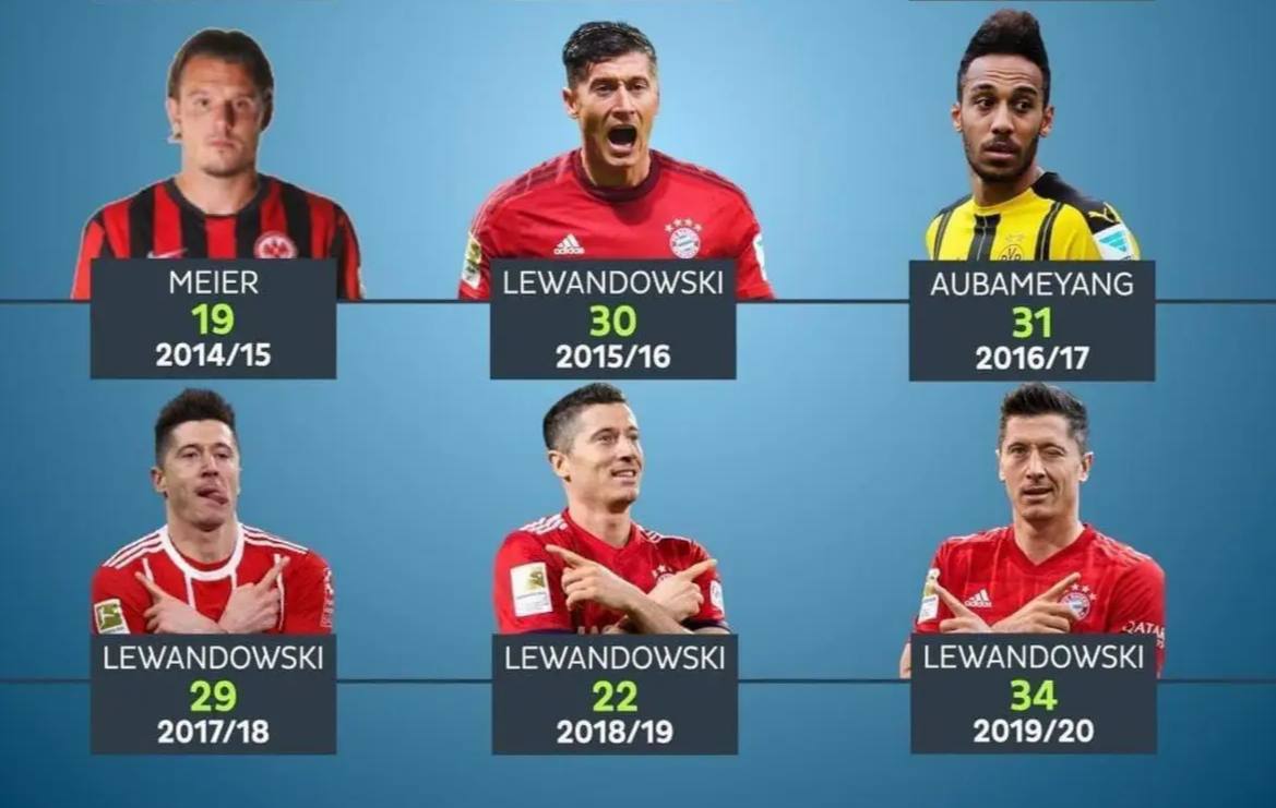 حساب رسمی بوندسلیگا در شبکه اجتماعی اینستاگرام، تصویری از آقای گلهای ۲۰ فصل اخیر بوندسلیگا منتشر کرده است. روبرت لواندوفسکی علاوهبر اینکه تنها بازیکنی است که چند بار آقای گل شده، در کنار پیر امریک اوبامیانگ و هری کین تنها بازیکنی است که فصل ۳۰+ گله در این رقابتها داشته است. مهاجم لهستانی چهار بار موفق بهثمر رساندن ۳۰+ گل در یک فصل بوندسلیگا شده و یک فصل ۴۰+ گله هم داشته که موفق به شکستن رکورد گرد مولر در آن شده است.