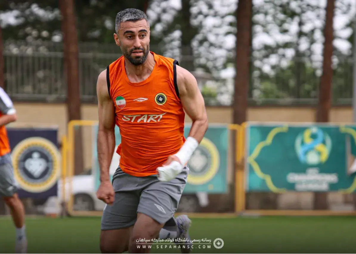 کاوه رضایی با شرایط سخت اما با انگیزه مظائف در تمرین امروز سپاهان حضور داشت.