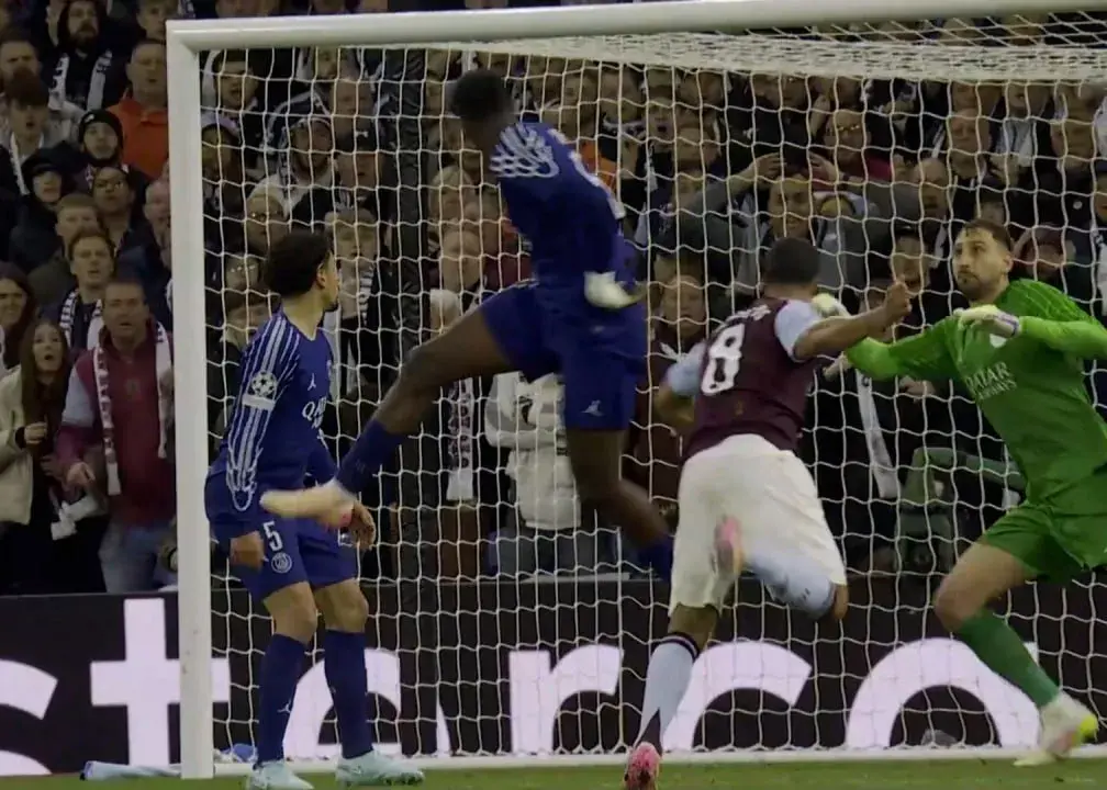 جایی که دفع ناقص ویلیان ناچو توپ را پشت محوطه جریمه به یوری تیلمانس رساند تا ستاره شماره ۸ استون ویلا با یک ضربه سر به موقع تیمش را در آستانه رسیدن به گل چهارم قرار دهد که ناگهان دوناروما با پروازی بلند و چشم نواز توانست این توپ را با کف دست راست خود به زمین برگشت دهد و تیمش را در بازی نگه دارد.