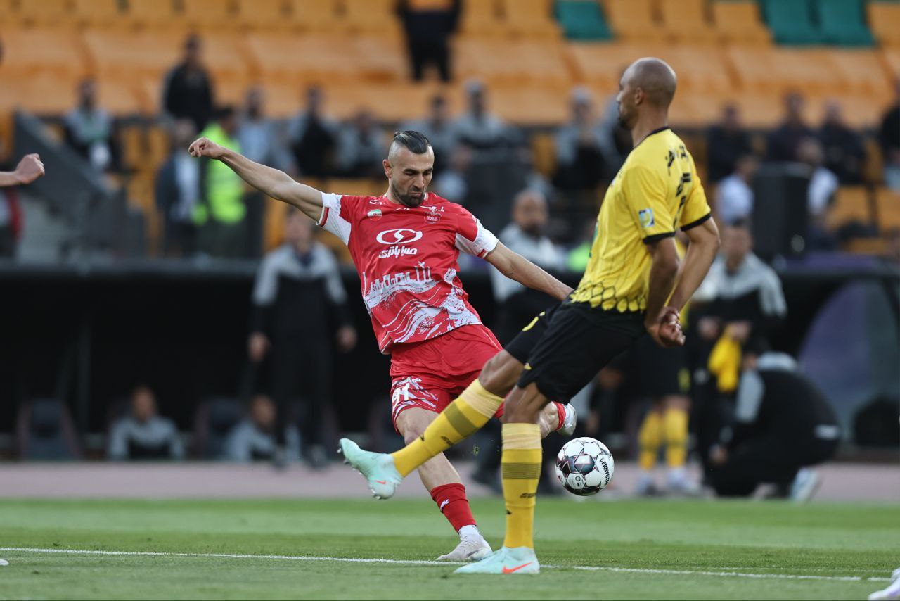 در دقیقه ۱۸، رضا شکاری تکلی روی پای سردار دورسون، مهاجم پرسپولیس میزند و درست است که به مچ پای او برخورد میکند، ولی پا حالت کشیده ندارد و بازیکن تا برخوردی انجام میشود، پا را جمع میکند و تصمیم داور برای دادن کارت زرد قابل دفاع بود.