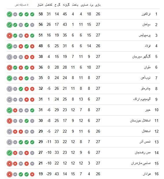 عکس/ جدول لیگ برتر پس از برد تراکتور و شکست پرسپولیس