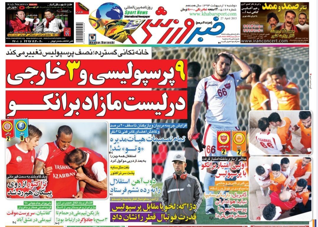 برانکو ایوانکوویچ سرمربی وقت پرسپولیس به خوبی می‌دانست این تیم برای لیگ پانزدهم باید متحول شود در غیر این صورت شانسی برای موفقیت نخواهد داشت روی همین اصل از اوایل اردیبهشت سال ۹۴ به دنبال تغییرات مورد نظرش بود. در همین راستا، هفتم اردیبهشت سال ۹۴ طی گزارشی اختصاصی که تیتر اول خبرورزشی شد، از متحول شدن پرسپولیس در تابستان همان سال خبر دادیم و تاکید کردیم ۹ بازیکن داخلی و سه مهره خارجی آن زمان پرسپولیس دیگر در لیست برانکو قرار نمی‌گیرند و پس از پایان لیگ چهاردهم باید از این تیم بروند.