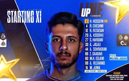 با اعلام باشگاه استقلال، تیم فوتبال استقلال امروز از ساعت ۱۸:۱۵ در ورزشگاه آزادی میزبان تیم فوتبال آلومینیوم اراک خواهد بود. با نظر مجتبی جباری سرمربی آبی پوشان، ترکیب استقلال برای این دیدار به شرح است.