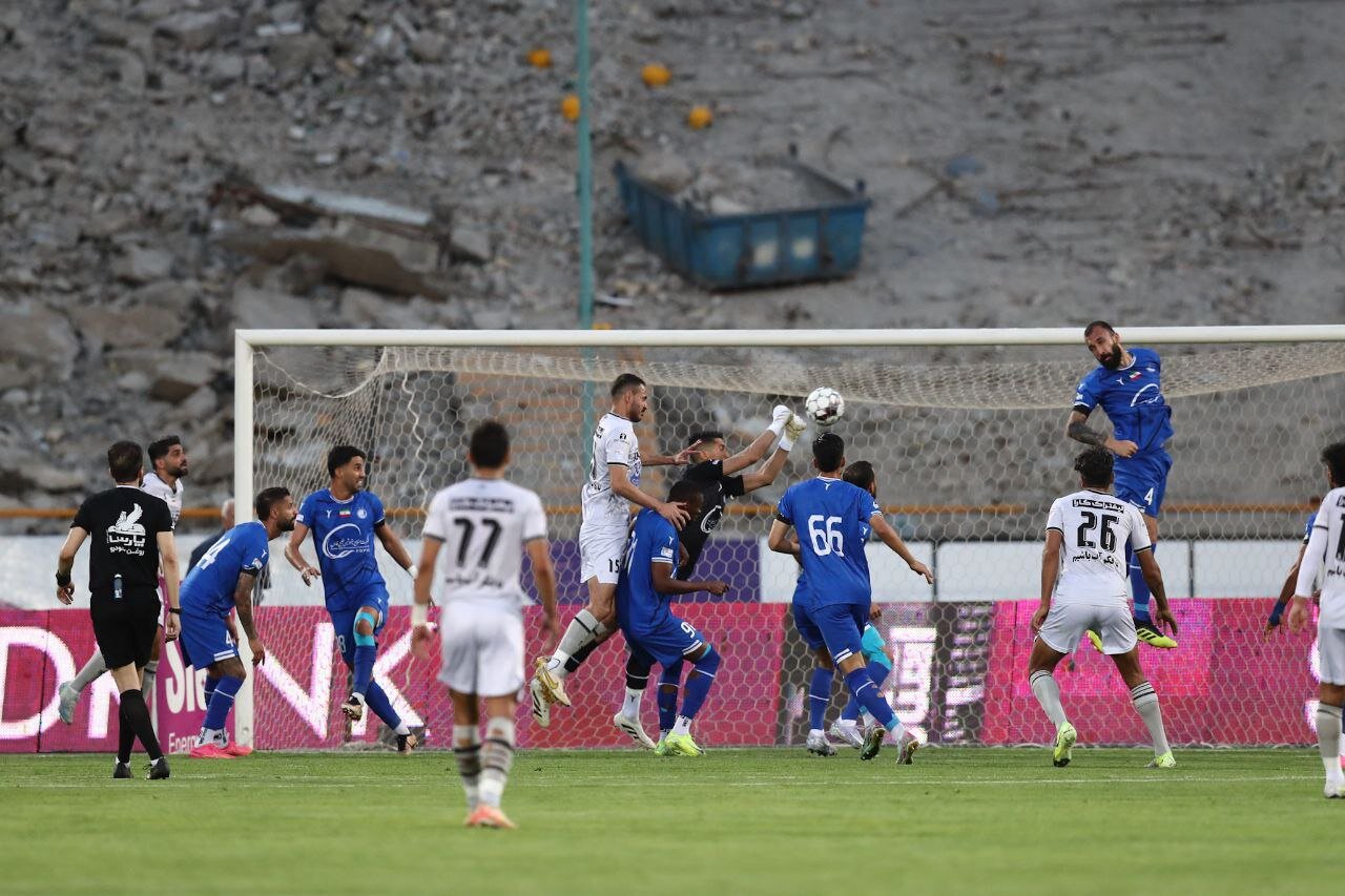 استقلال یک – آلومینیوم صفر (دقیقه ۳۱: رامین رضاییان): پاس رامین در سمت راست به محمدحسین اسلامی رسید. ارسال او به دست بهرام گودرزی برخورد کرد که امیر عرب براقی پس از بازبینی صحنه توسط VAR، یک پنالتی به سود آبیها اعلام کرد. رامین رضاییان پشت این توپ ایستاد و با وجود تشخیص درست خلیفه، توپ را به گوشه دروازه فرستاد و گل نخست را به ثمر رساند.