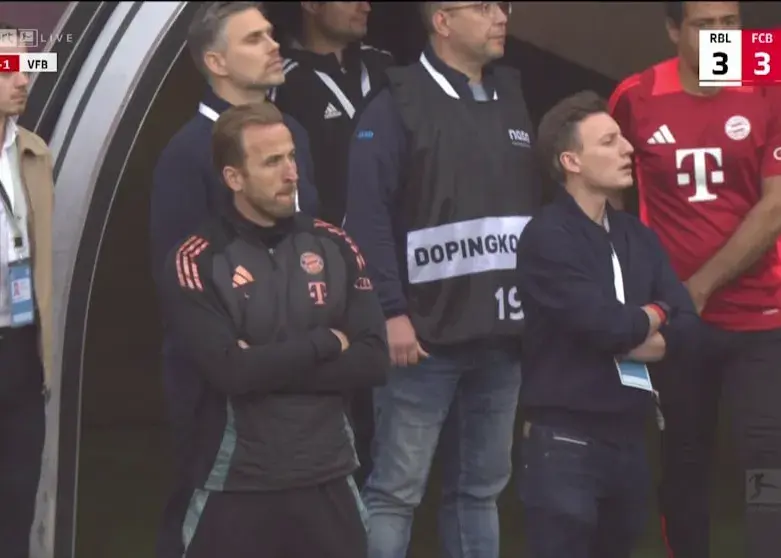 هری کین امشب به دلیل محرومیت نمیتوانست برای بایرن مونیخ بازی کند. از ابتدا دیدار بایرن مقابل لایپزیش تصاویر او توسط دوربین تلویزیونی شکار شد درحالیکه روی سکوها نشسته و با نگرانی و هیجان بازی را تماشا میکرد. بایرن مونیخ کافی بود این بازی را با پیروزی پشت سر بگذارد تا دو هفته مانده به پایان فصل قهرمانیاش را قطعی کند.
